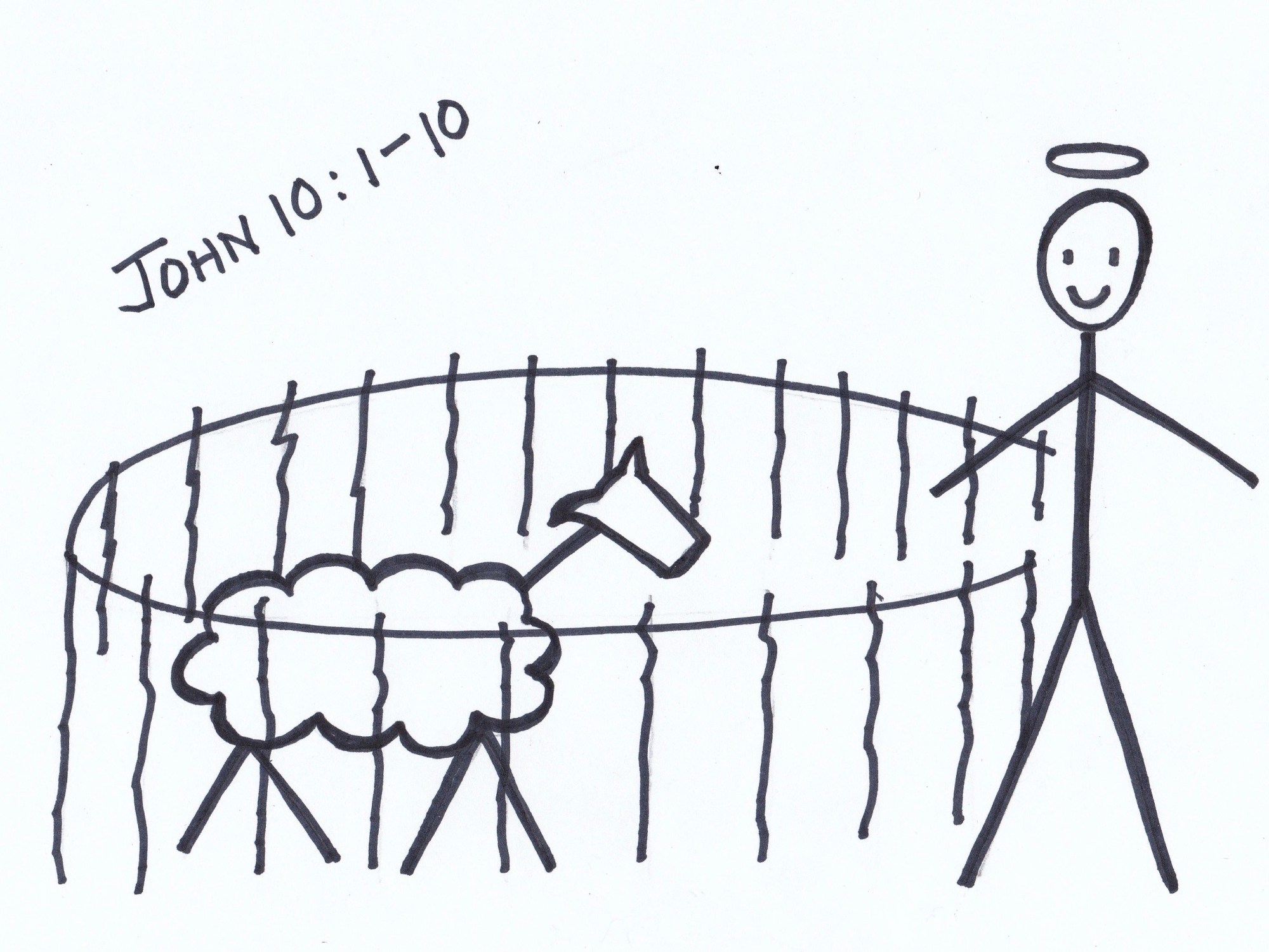Every time I hear this passage from John’s Gospel, it takes me back to my first semester in seminary and my New Testament class with Professor Paul Holloway. In my mind’s eye, I can see the whiteboard, crammed with timelines and bullet points and then, all by itself on one side of the board, a picture of a big, round sheep pen… a stick-figure sheep with a square head standing inside… and a stick-figure Jesus guarding the gate. Professor Holloway was (and is) a brilliant New Testament scholar, one of the foremost authorities on the Apostle Paul in the world. But he’ll tell you, himself, that he and many other New Testament scholars aren’t always quite sure about what to do with the Gospel of John. It’s very different from the Synoptic Gospels: Matthew, Mark and Luke. Methodist pastor and author Adam Hamilton summarizes the differences nicely, I think, when he observes that while the Synoptics tend to tell the story of the “what, when and where” of Jesus’ ministry, John’s account focuses on who Jesus was, and why he became Immanuel… God with us. And like many academics, Professor Holloway sometimes seemed to be more comfortable with the what, when and where.